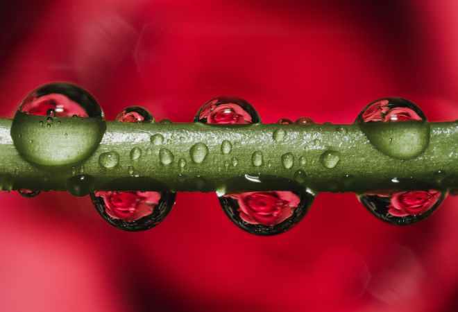 green stem with dew droplets